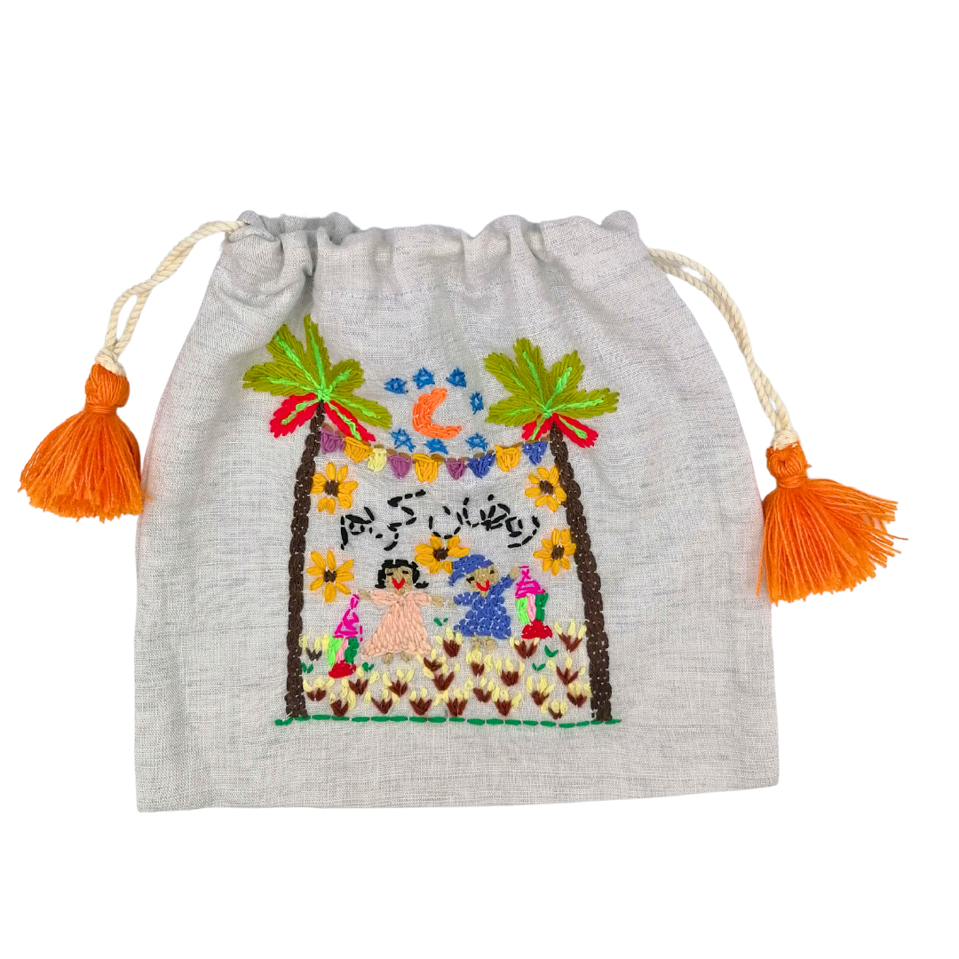 Wish your loved ones a Ramadan Kareem with our hand-embroidered cotton pouches.