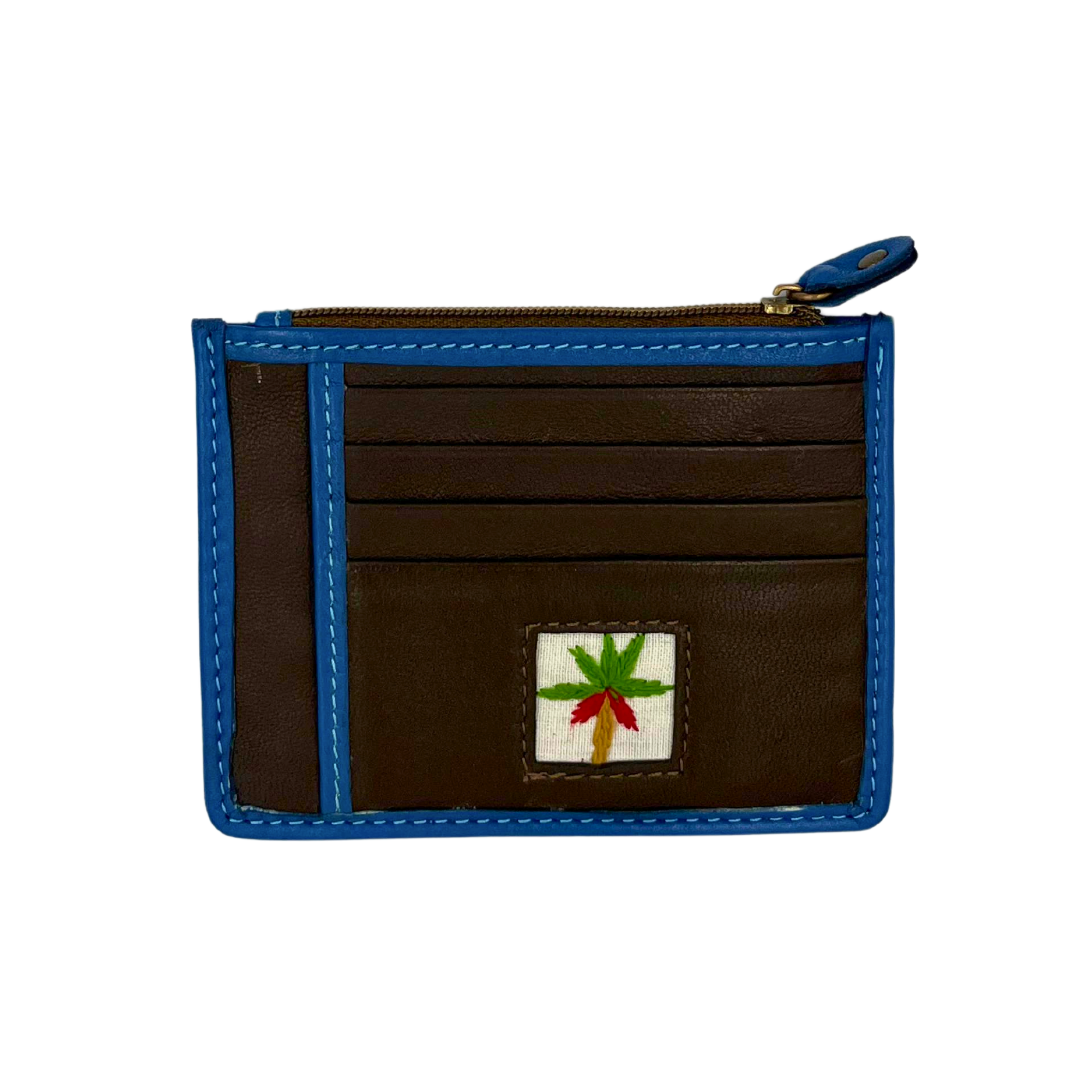 Zipper wallet with card holder on sides with our unique palm embroidery.