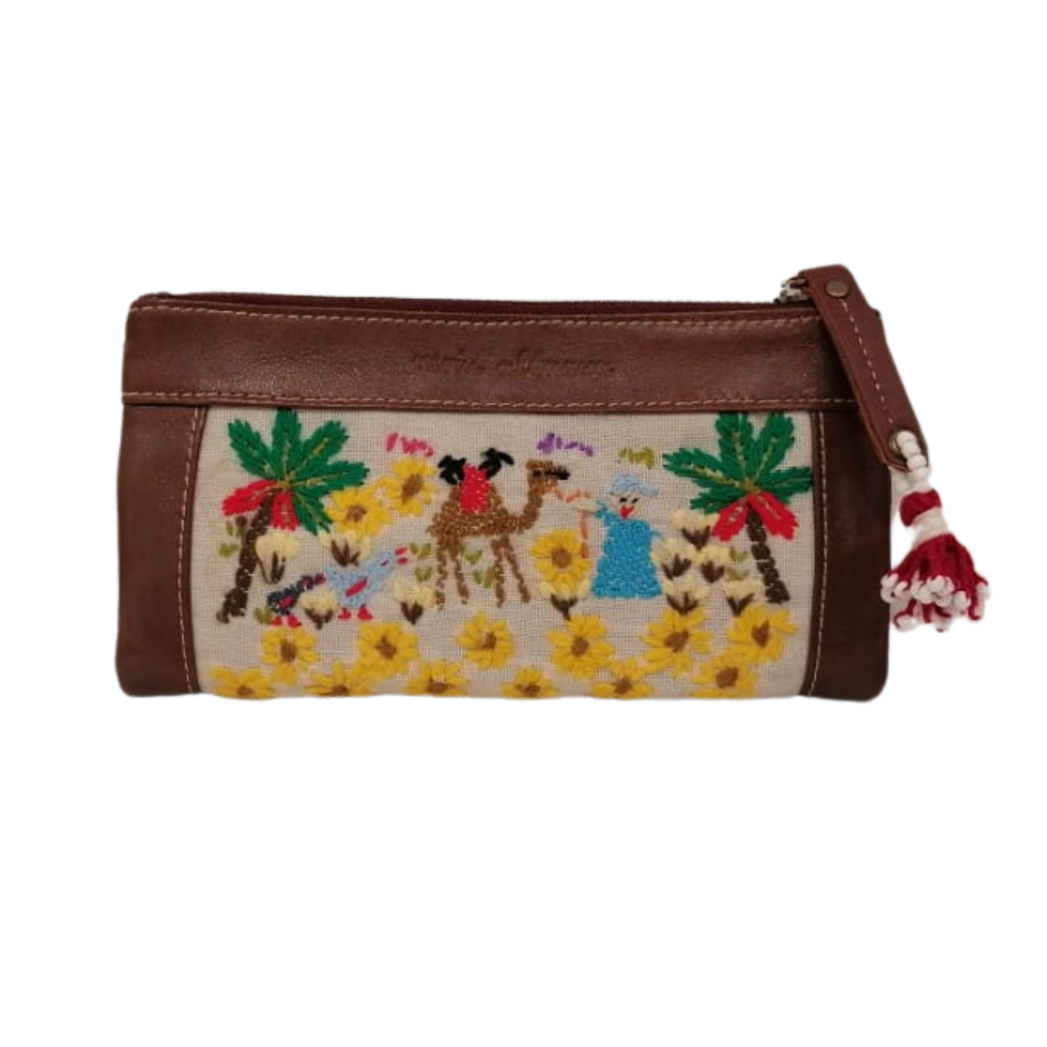 A very practical wallet with compartments and pockets for all of your needs. It features contemporary Egyptian hand embroidery and Tassels from Aswan.
