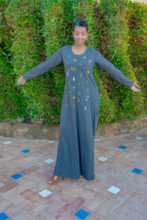 Maxi Dress with our unique Fellahy Hand Embroidery on cotton.