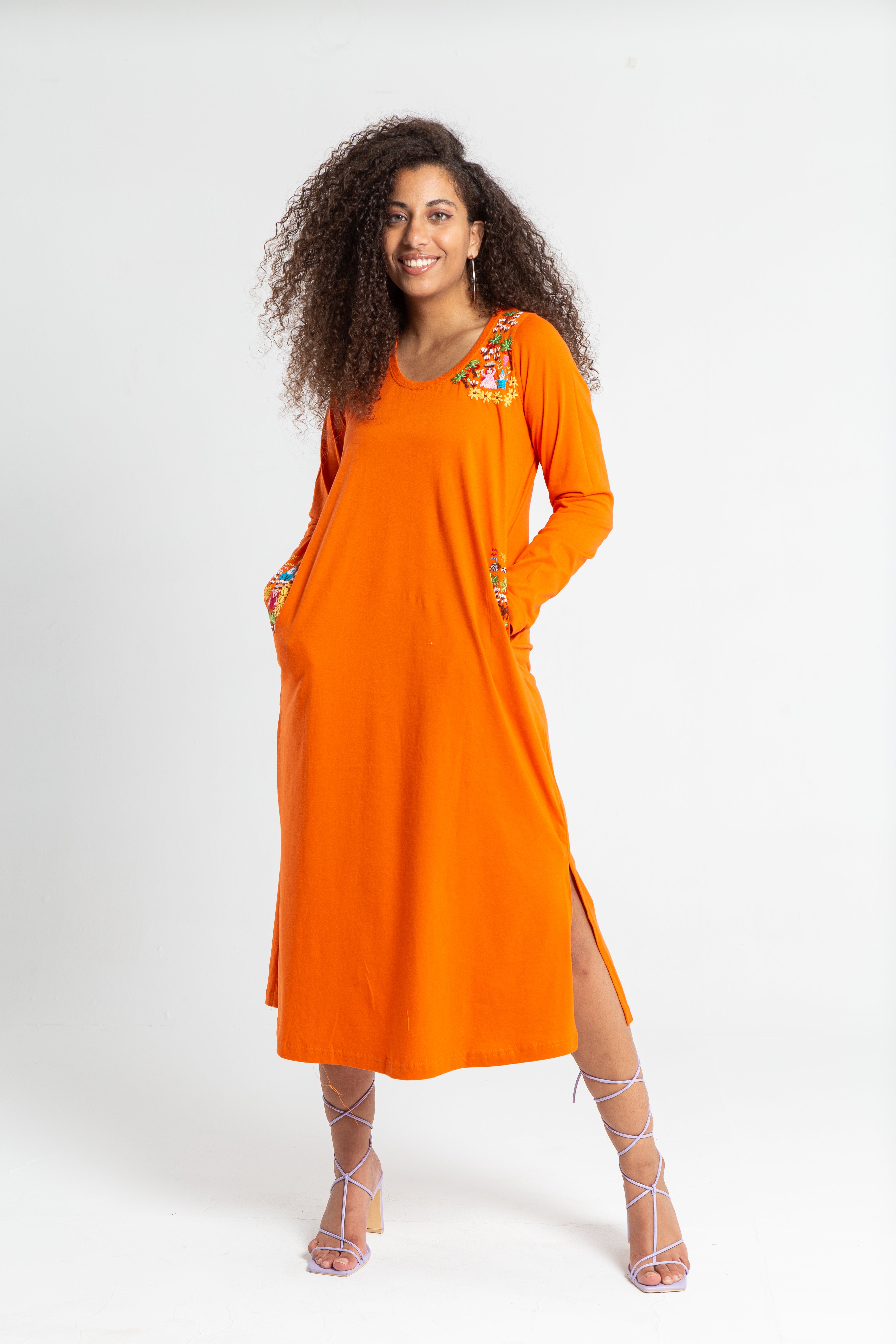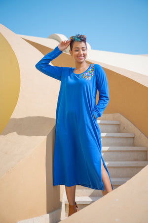 Maxi Dress with our unique Fellahy Hand Embroidery on cotton.