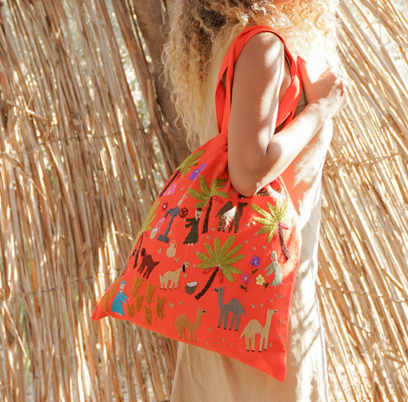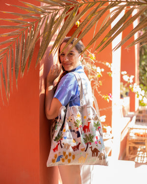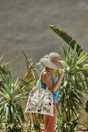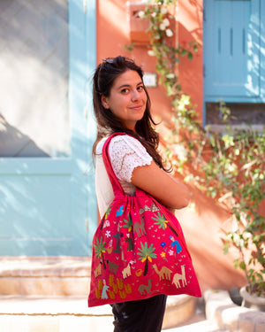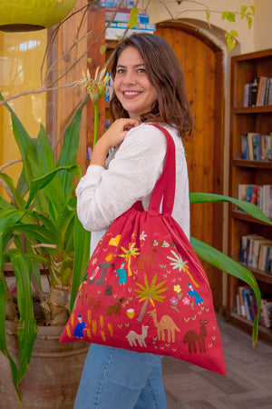 Be unique and environmentally conscious! Replace plastic bags with this hand embroidered Fabric Tote made from 100% Egyptian cotton.