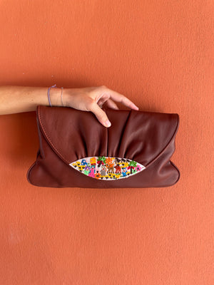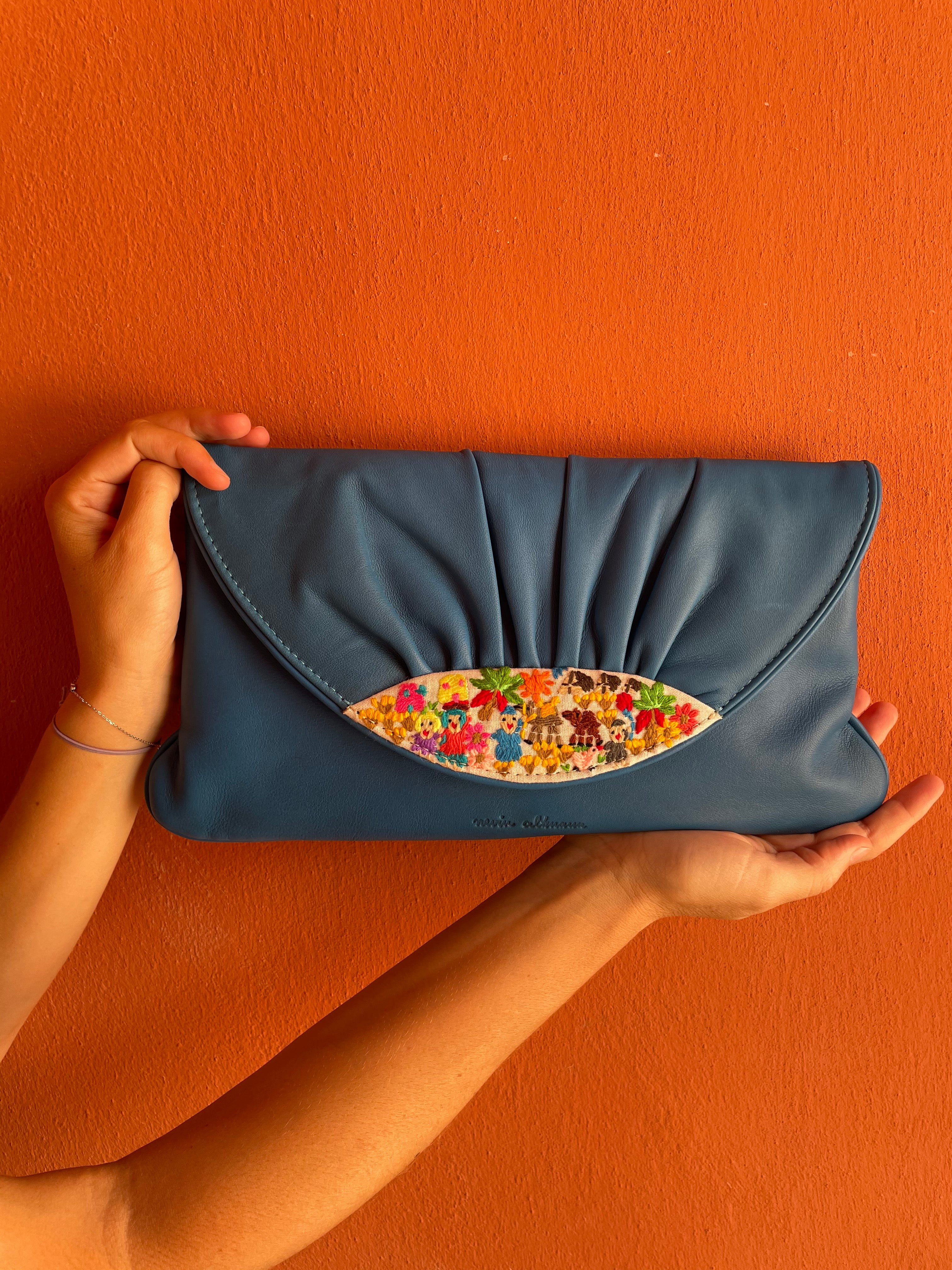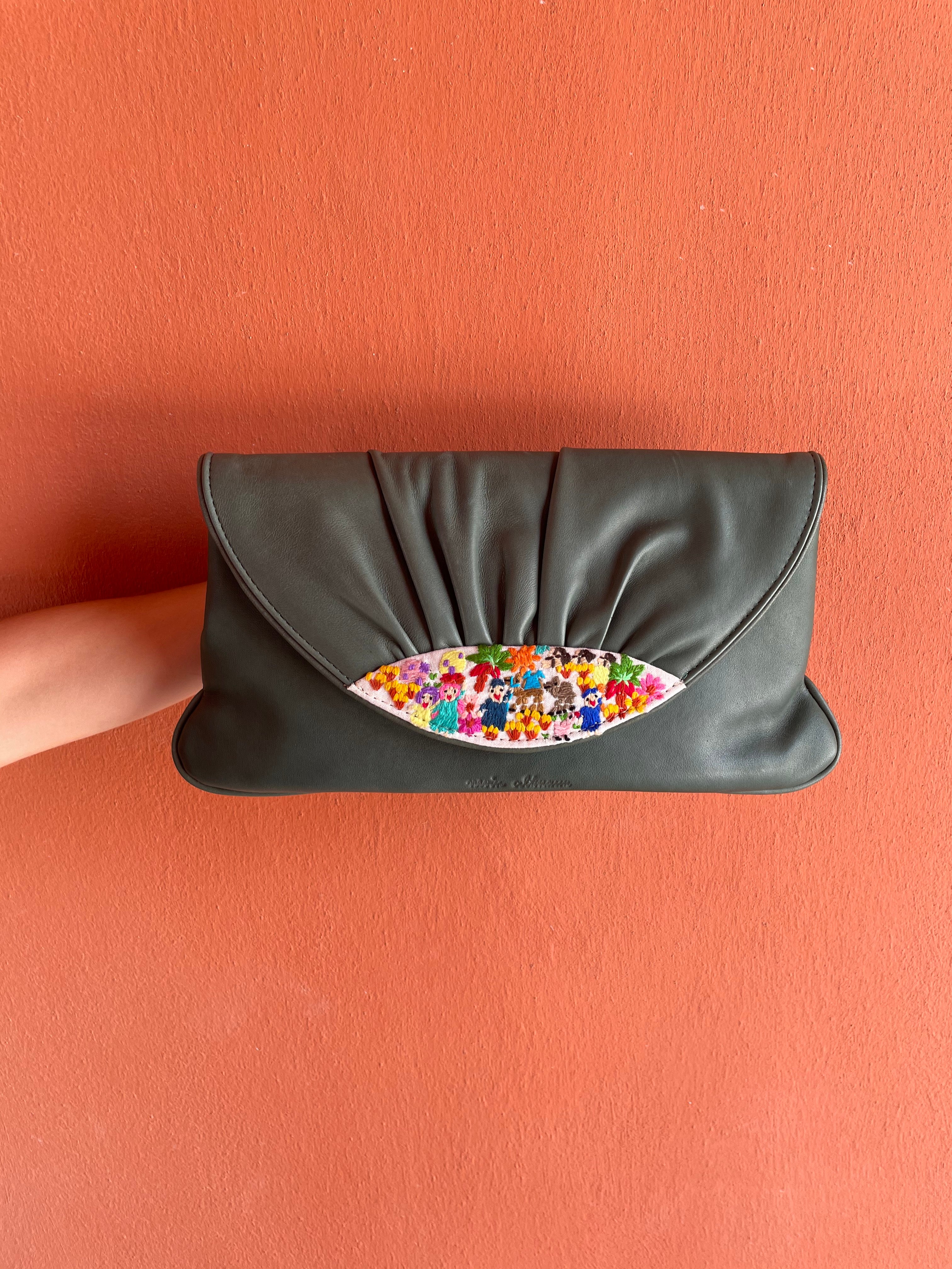 The Sostano Clutch is made from soft leather and features Felllahy hand embroidery on the flap.