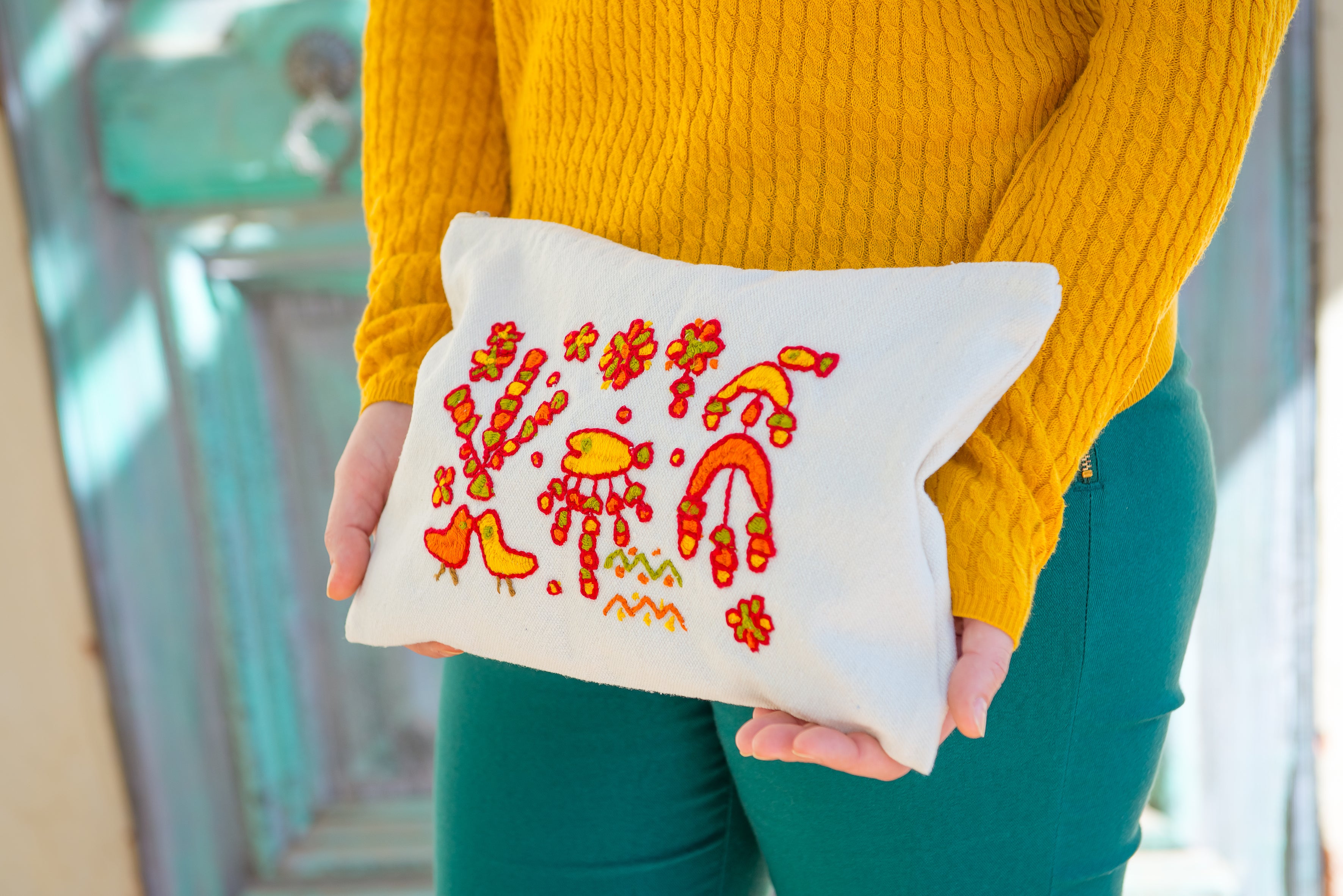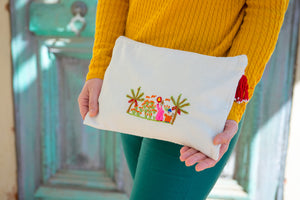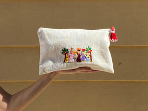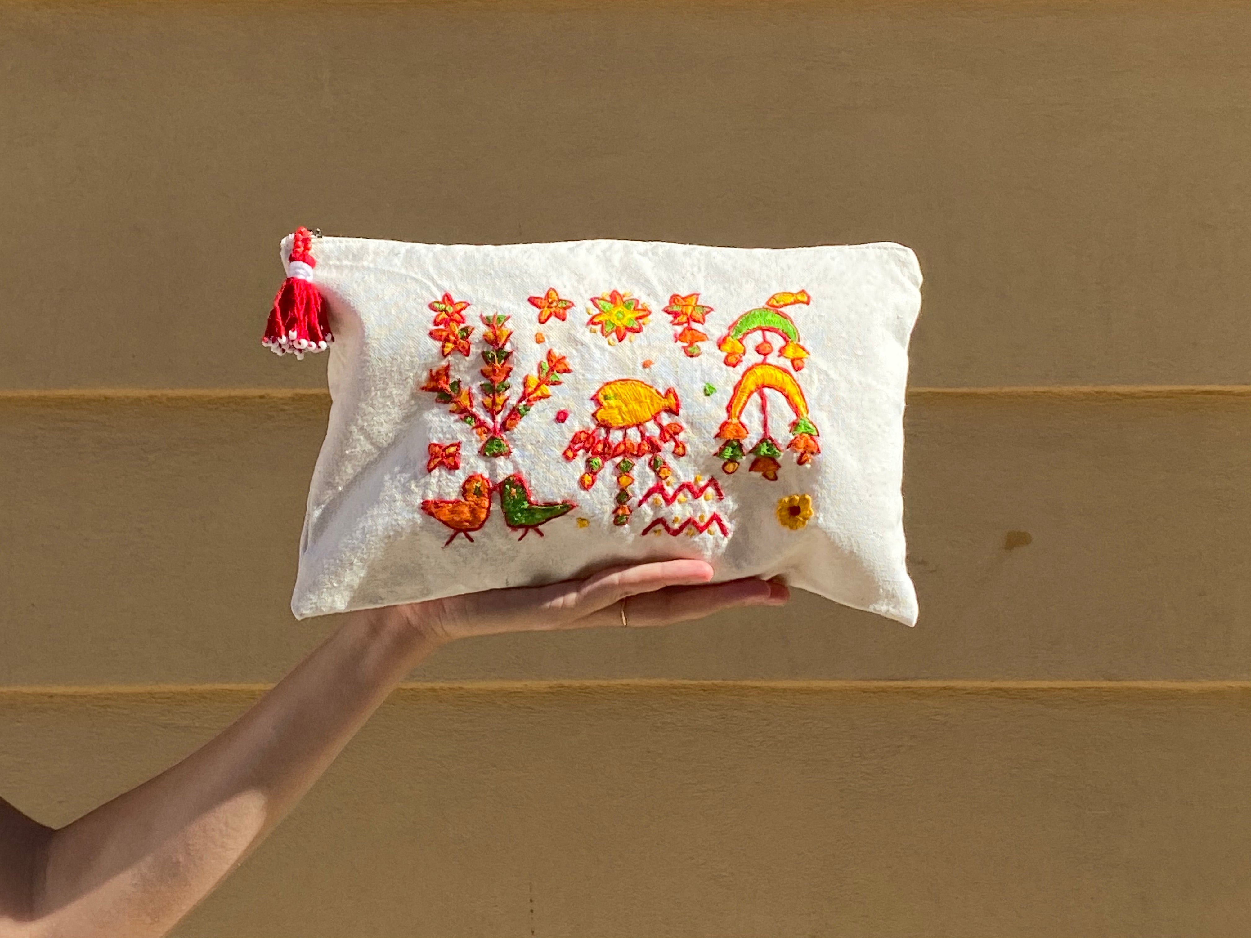 Zipped Pouch, Contemporary Egyptian Hand Embroidery on both sides of the pouch, Tassel from Aswan
