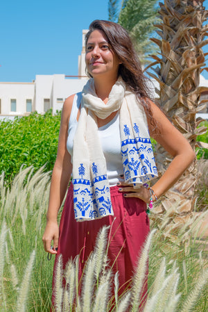 Hand Embroidered Nubian patterns inspired by drawings from traditional Nubian houses on Egyptian Cotton.
