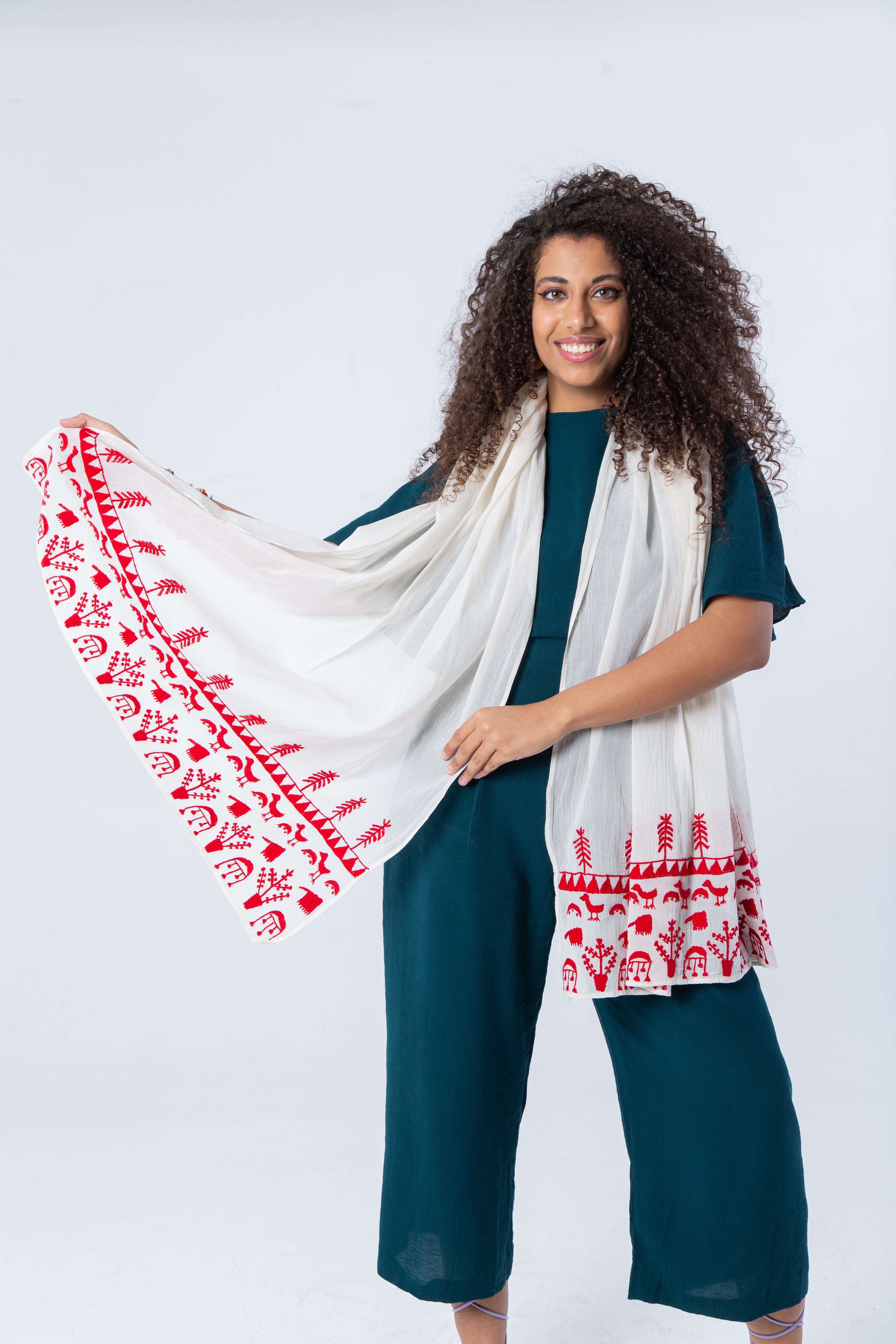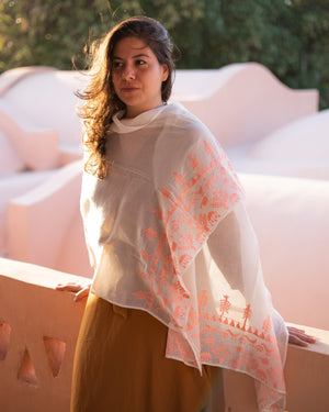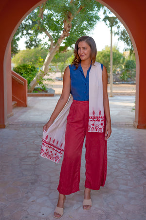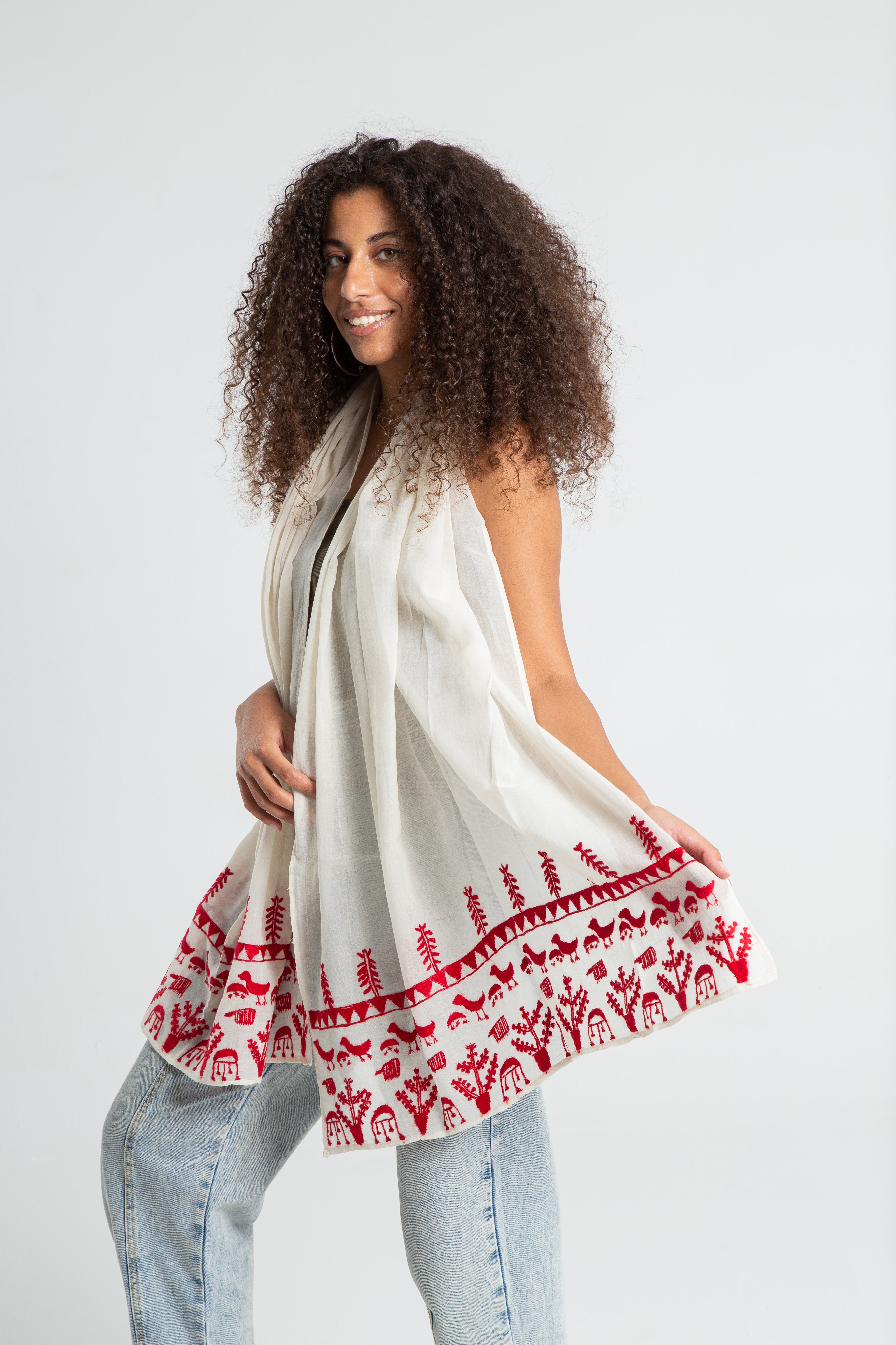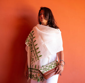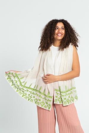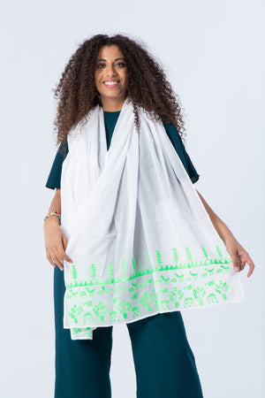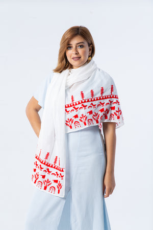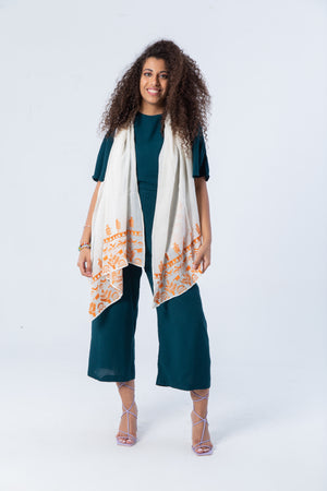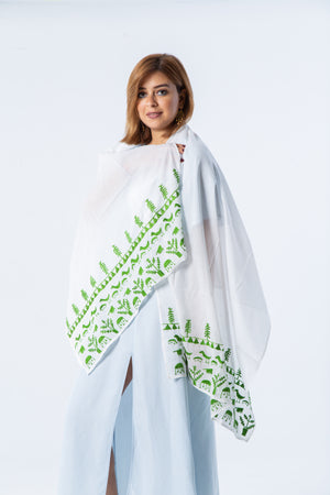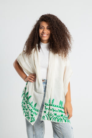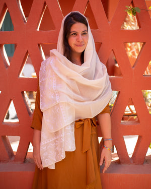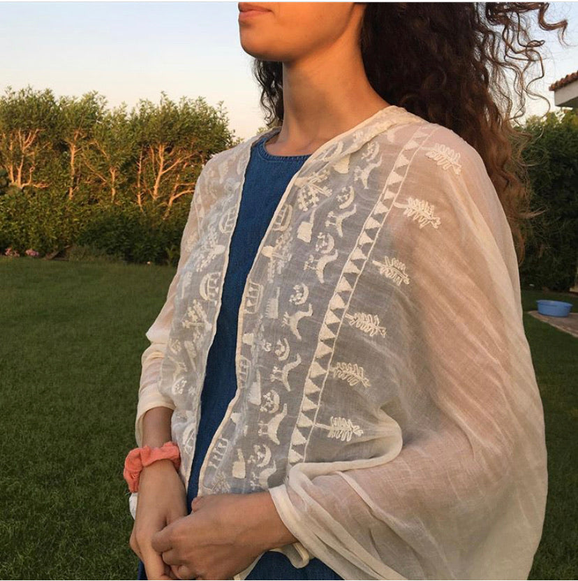 Color: White/ Off-white shawl with colored thread