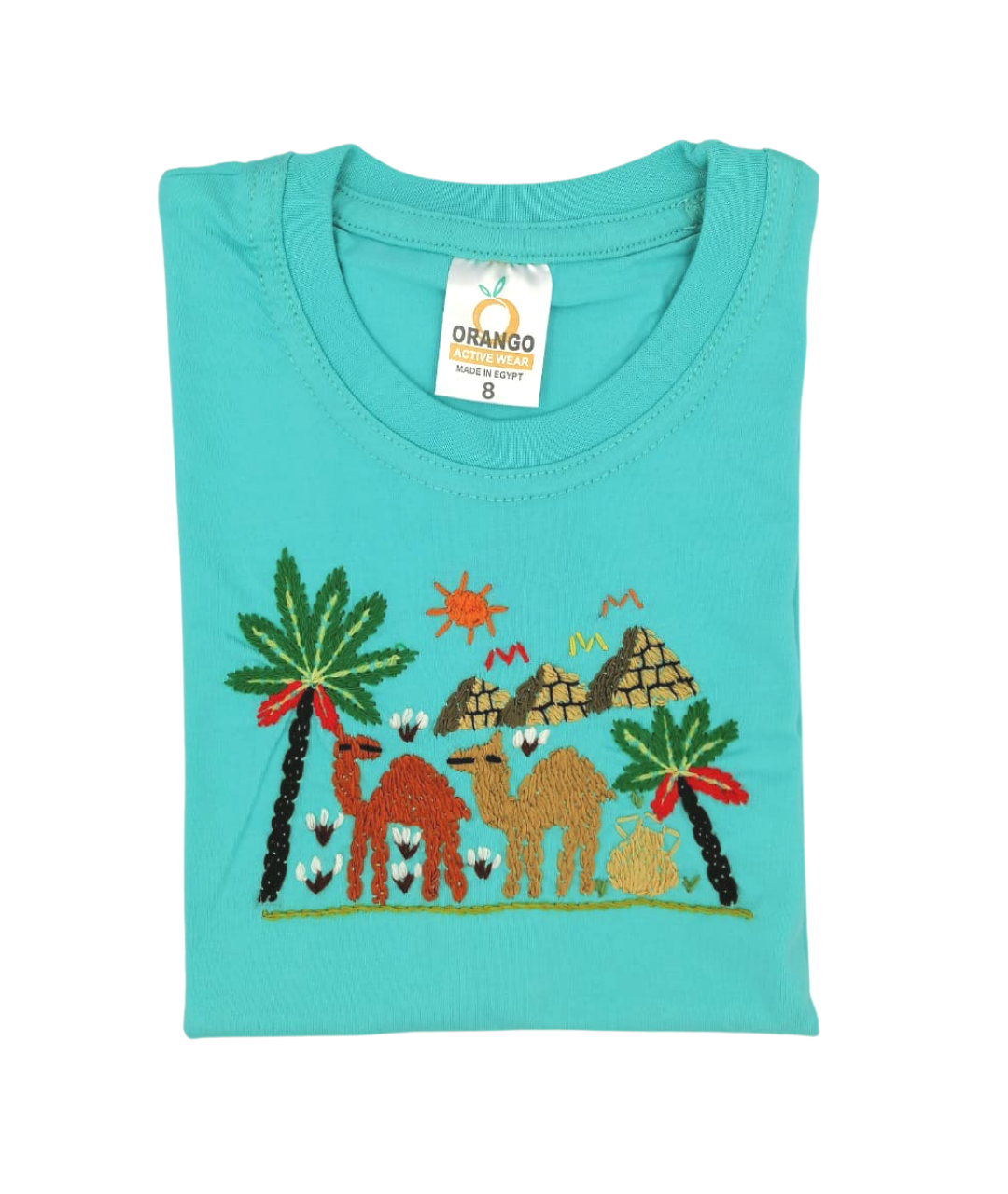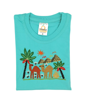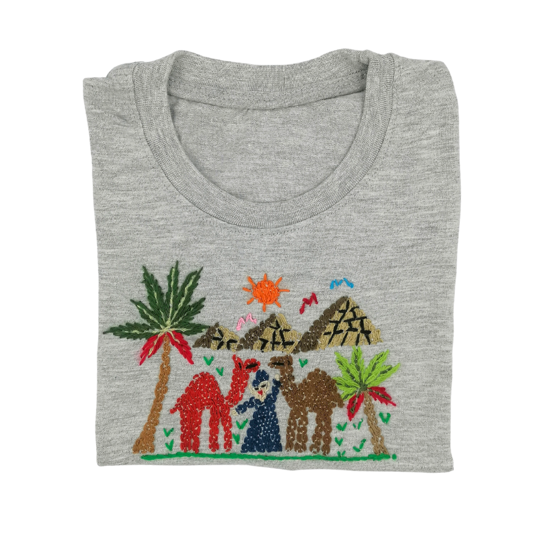A cotton T-Shirt made of premium Egyptian Cotton, featuring our Fellahy design beautifully hand embroidered by Egyptian women.