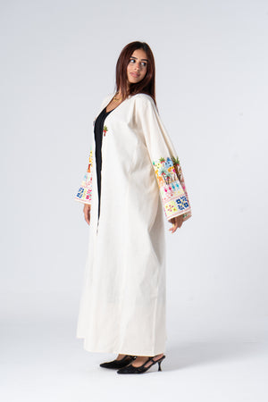 Unlock the captivating essence of Egypt's Nile Delta with the Sinai Shoq + Fellahy Kaftan. This exquisite garment showcases the intricate artistry of traditional Bedouin cross-stitch alongside our hand-drawn Fellahy embroidery, which tells the enchanting stories of rural life in this enchanting region. Handcrafted with meticulous attention to detail, features vibrant Bedouin cross-stitch and unique Fellahy embroidery, capturing the rich cultural heritage of Egypt's Nile Delta.