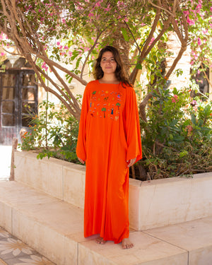 This Galabeya is unique! Comfortable, yet beautiful with our Fellahy design hand-embroidered on it by Egyptian women.