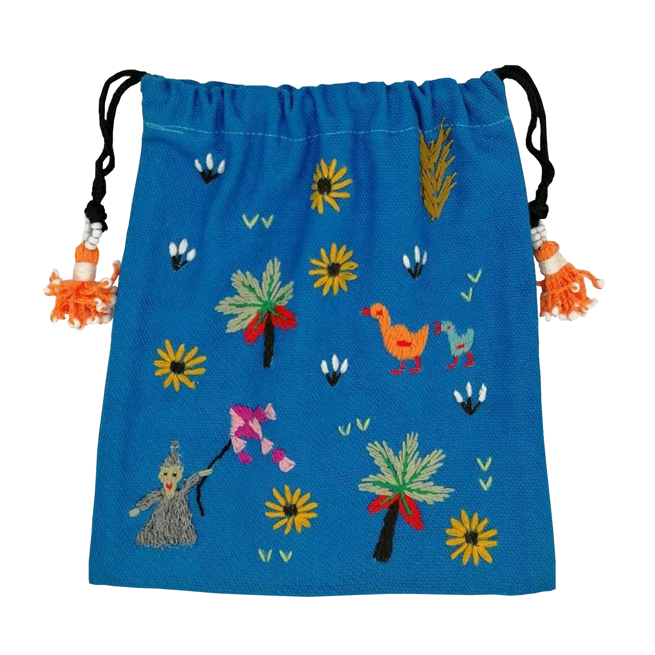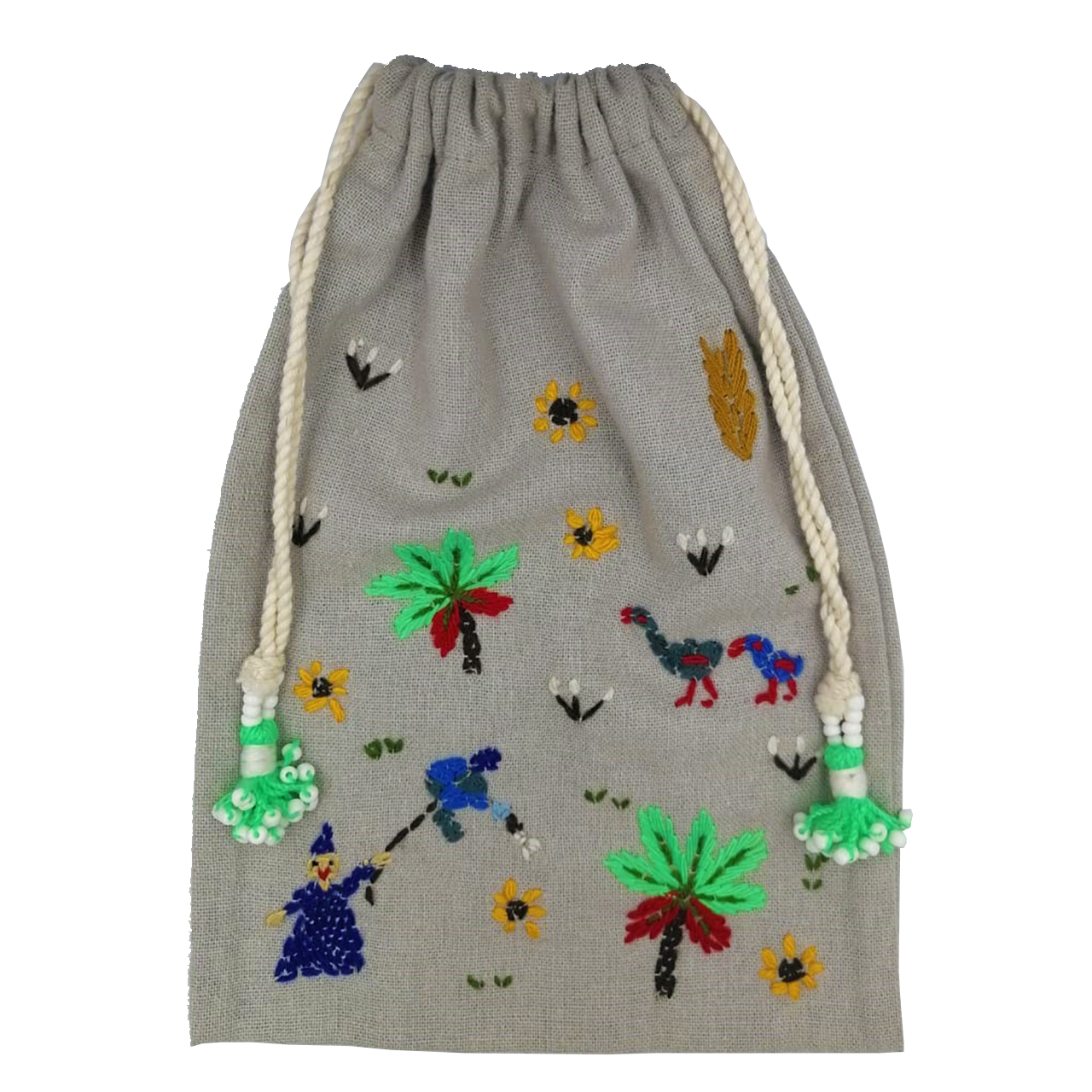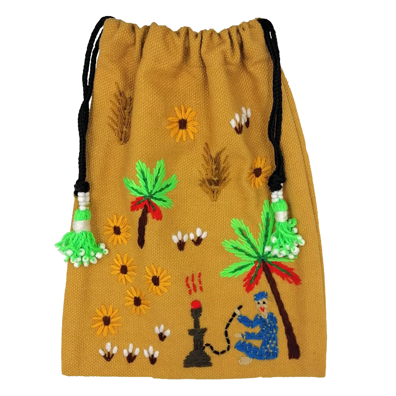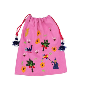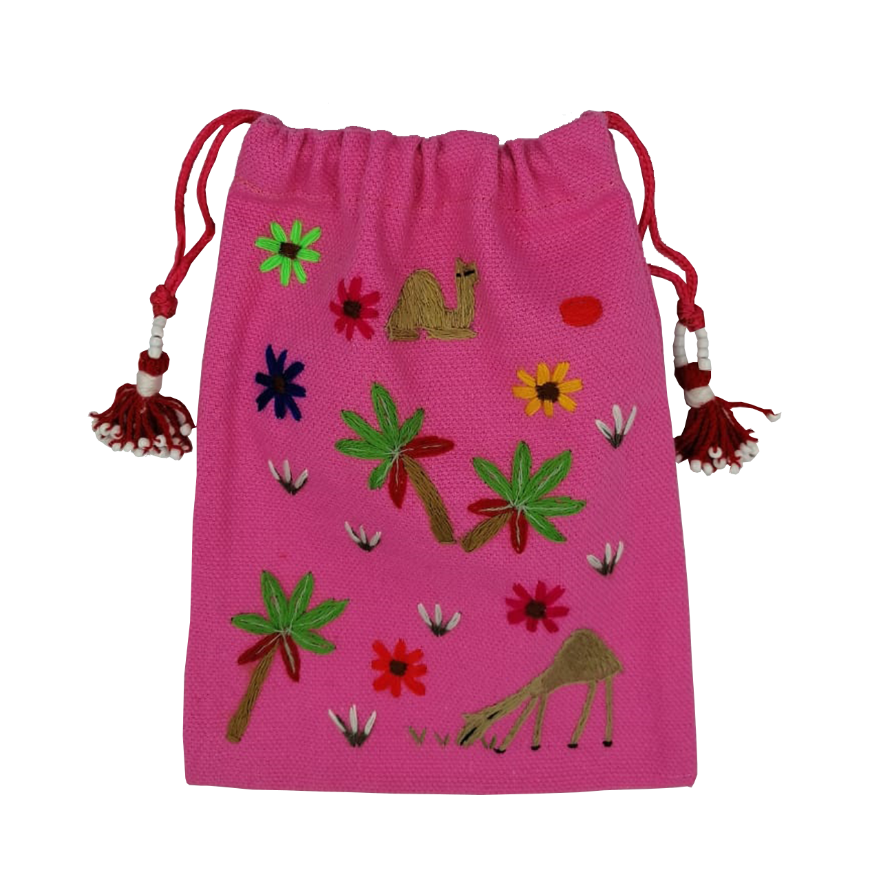These colorful little pouches are handmade by Egyptian women. The design is hand-drawn by Nevin and was inspired by daily life in the Egyptian countryside