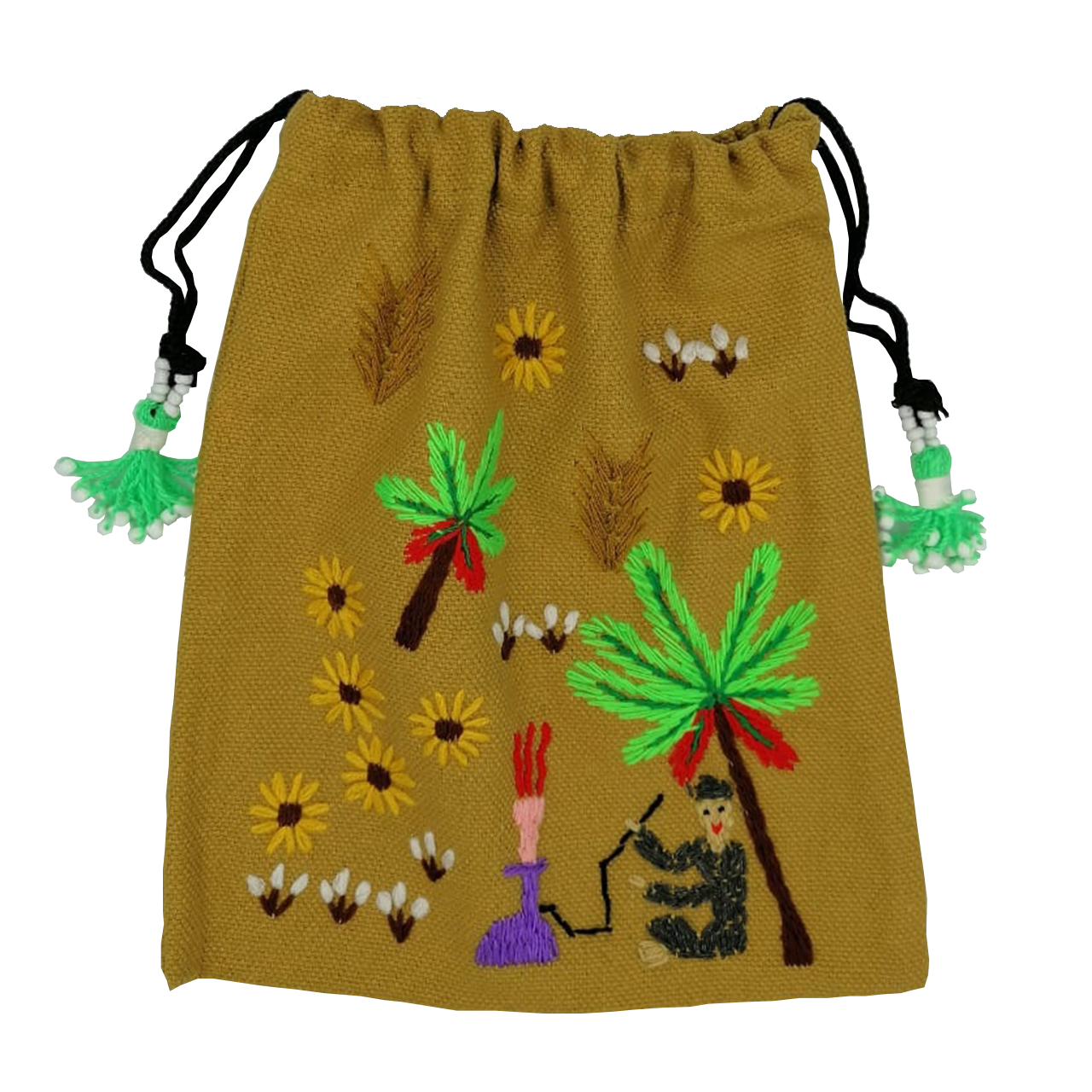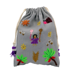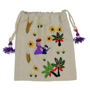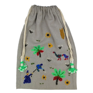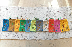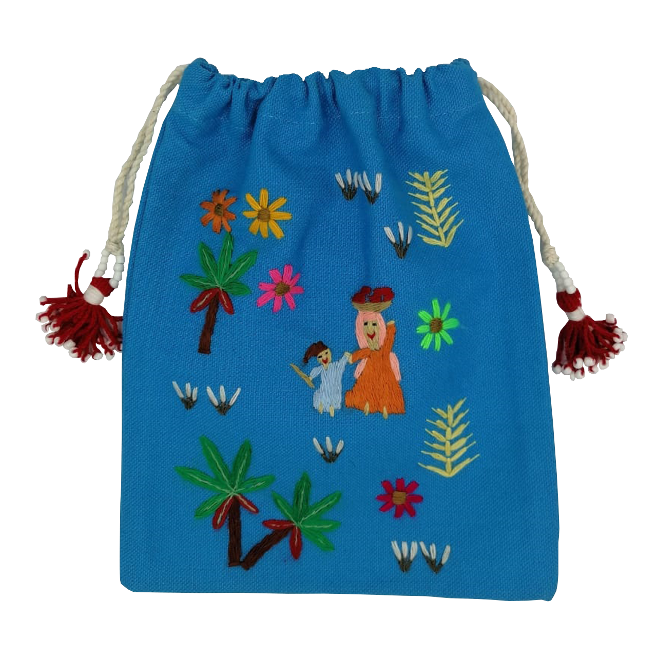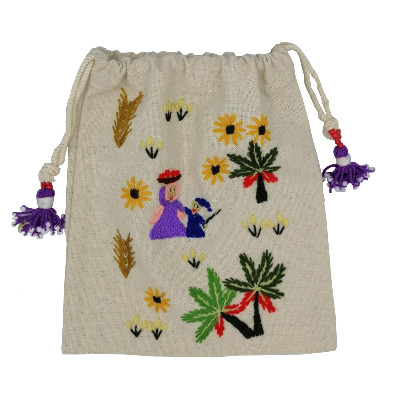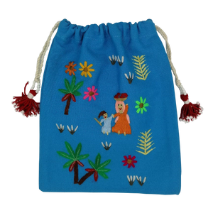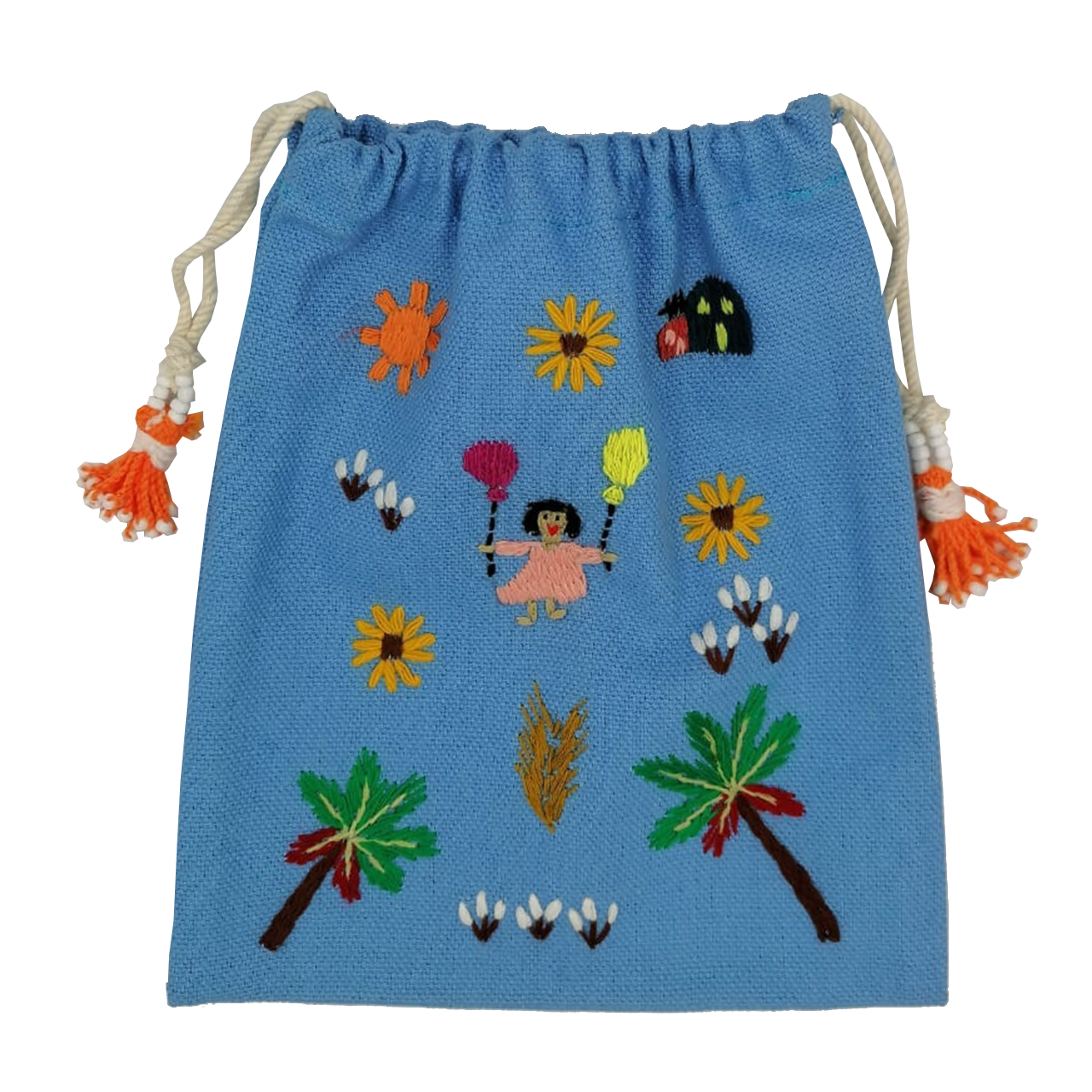 These colorful little pouches are handmade by Egyptian women. The design is hand-drawn by Nevin and was inspired by daily life in the Egyptian countryside